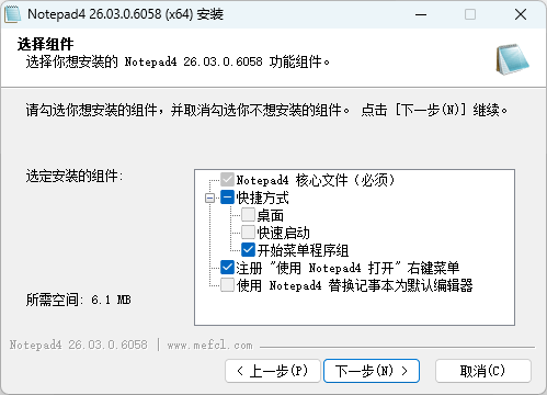 11、可以指定ESC键最小化Notepad2到系统托盘或关闭Notepad2; 提示说明 从v4.23版本开始文件名称标记"HD"的为高清工具栏图标风格版 添加右键菜单/替换记事本:菜单->设置->高级设置->系统集成 下载地址 Notepad4 v26.01r5986 简体中文绿色版 (2026/01/18)