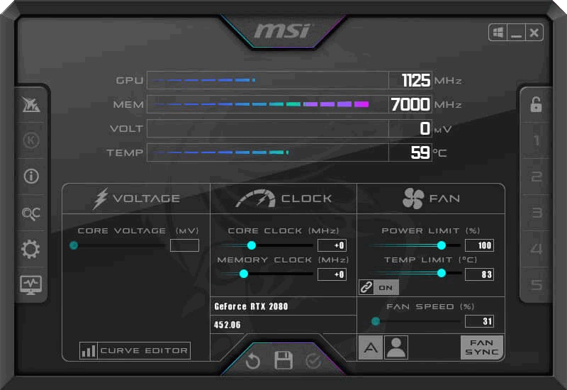 探索显卡超频的潜力范围听起来很危险,其实操作起来比想象中容易许多,MSI Afterburner 操频工具容易使用的接口,让消费者能够简易、精确的设定显卡各项参数。当您想要提高GPU频率和电压时又怕高温会伤害硬设备,只需通过 Afterburner 设定风扇转速就能轻易在性能表现与温度中取得上佳平衡。